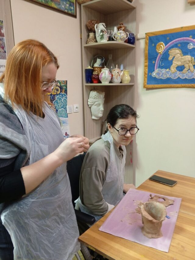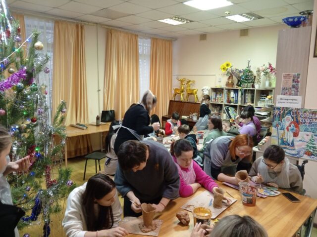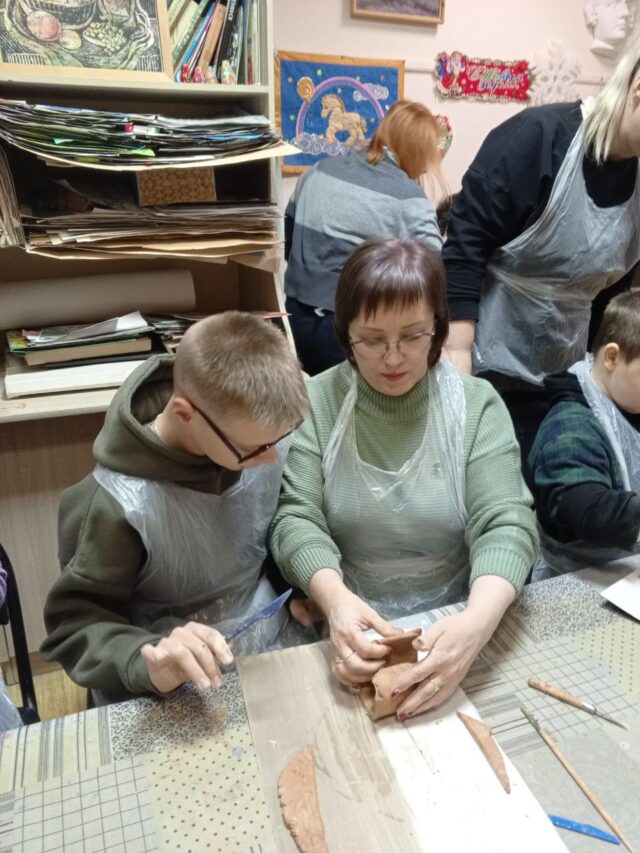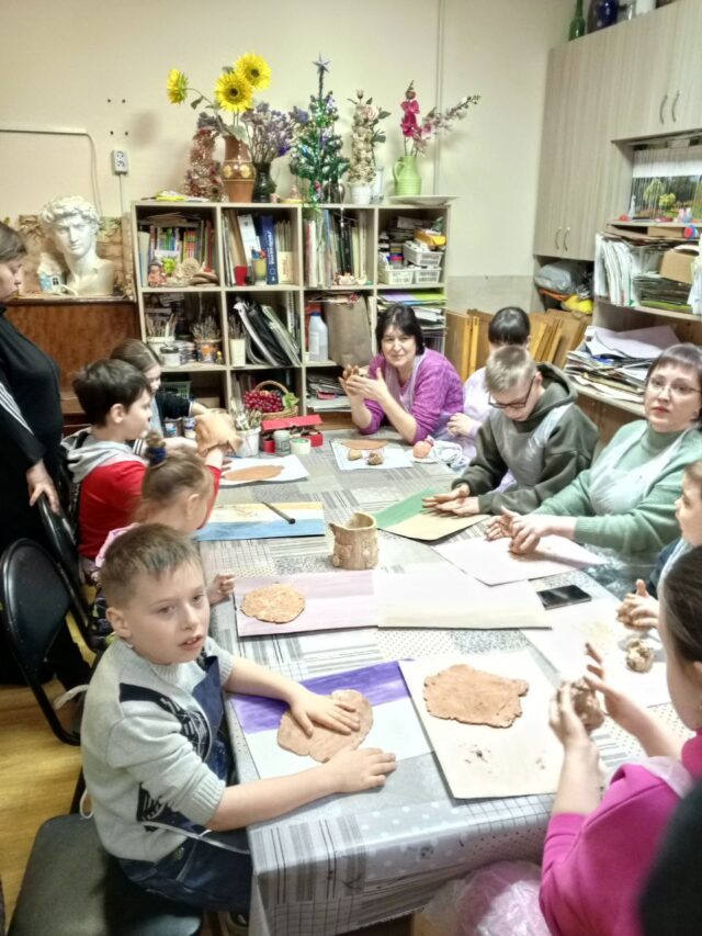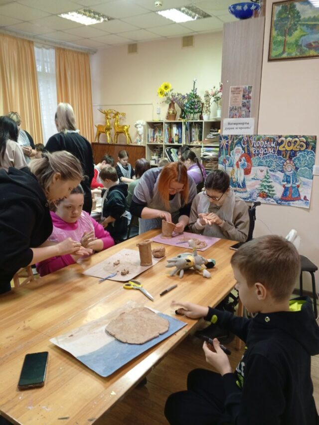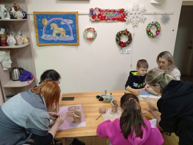 В Студии художественного творчества сегодня первая в новом году встреча участников Волонтерского общества помощи детям с ОВЗ и сиротам «Вместе». Дети уже хорошенько отдохнули на каникулах и успели соскучиться по занятиям и компании, поэтому весьма увлеченно занимались лепкой.